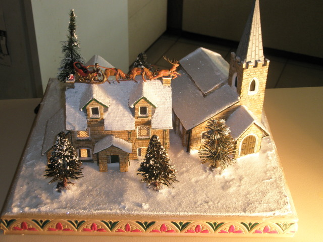 We had some computer difficulty over the holidays that prevented us from posting these great pictures from Russell Bance. These photos show some buildings that were made by Mr. Bance and raffled off in a fund-rasier: The buildings look warm and cozy, but it appears as though Santa may be having some difficulties: Our heartiest thanks to Mr. Bance for sharing these great pictures with us.